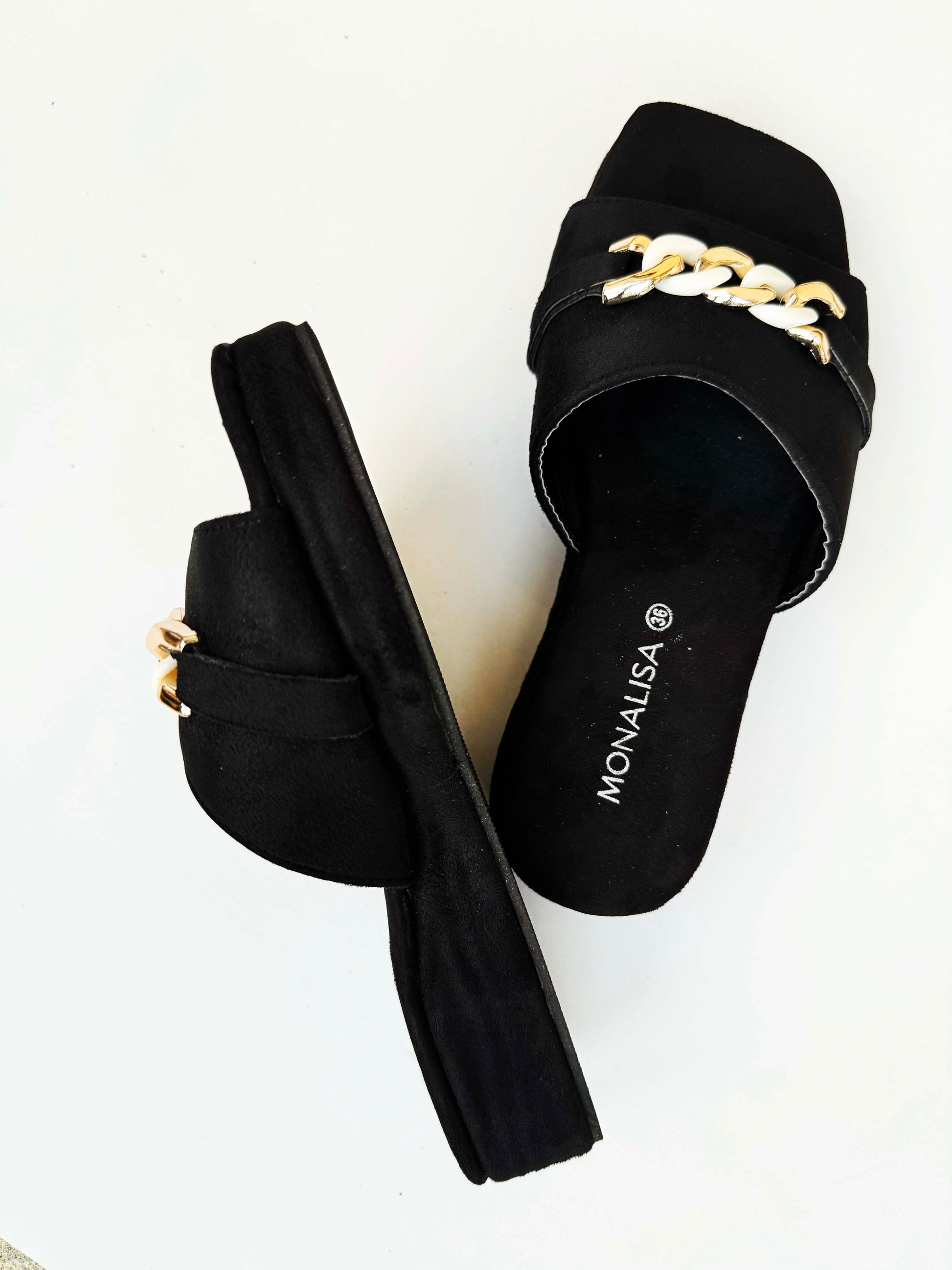 Made from high-quality faux suede upper and a durable rubber sole, these black chain detail sandals are designed to withstand daily use while keeping your feet cool and supported. Whether you're pairing them with jeans, dresses, or shorts, these versatile women's flat sandals are a must-have in your footwear collection. Available in sizes 36-42, they blend trendy chain decor with timeless black sophistication.