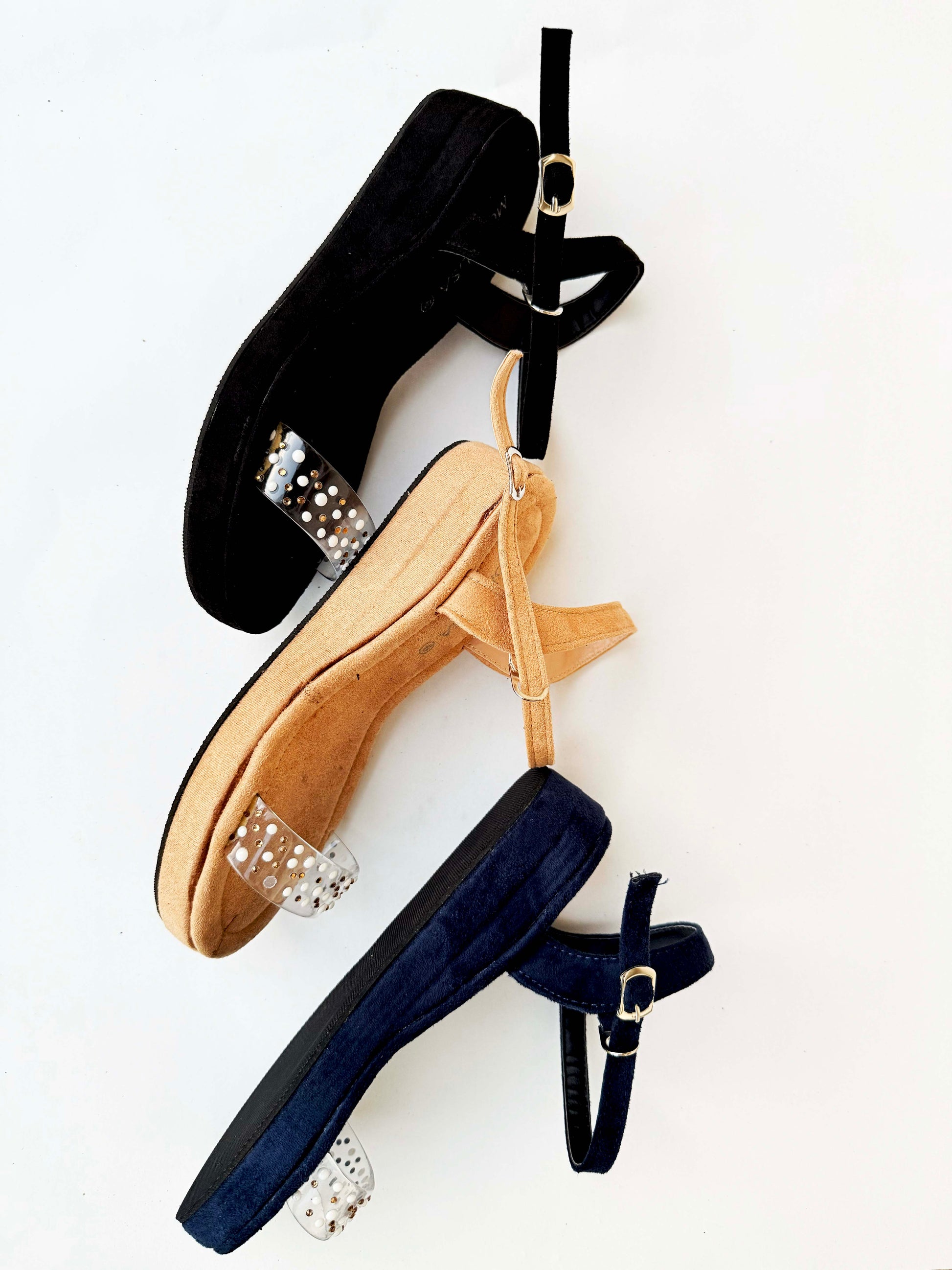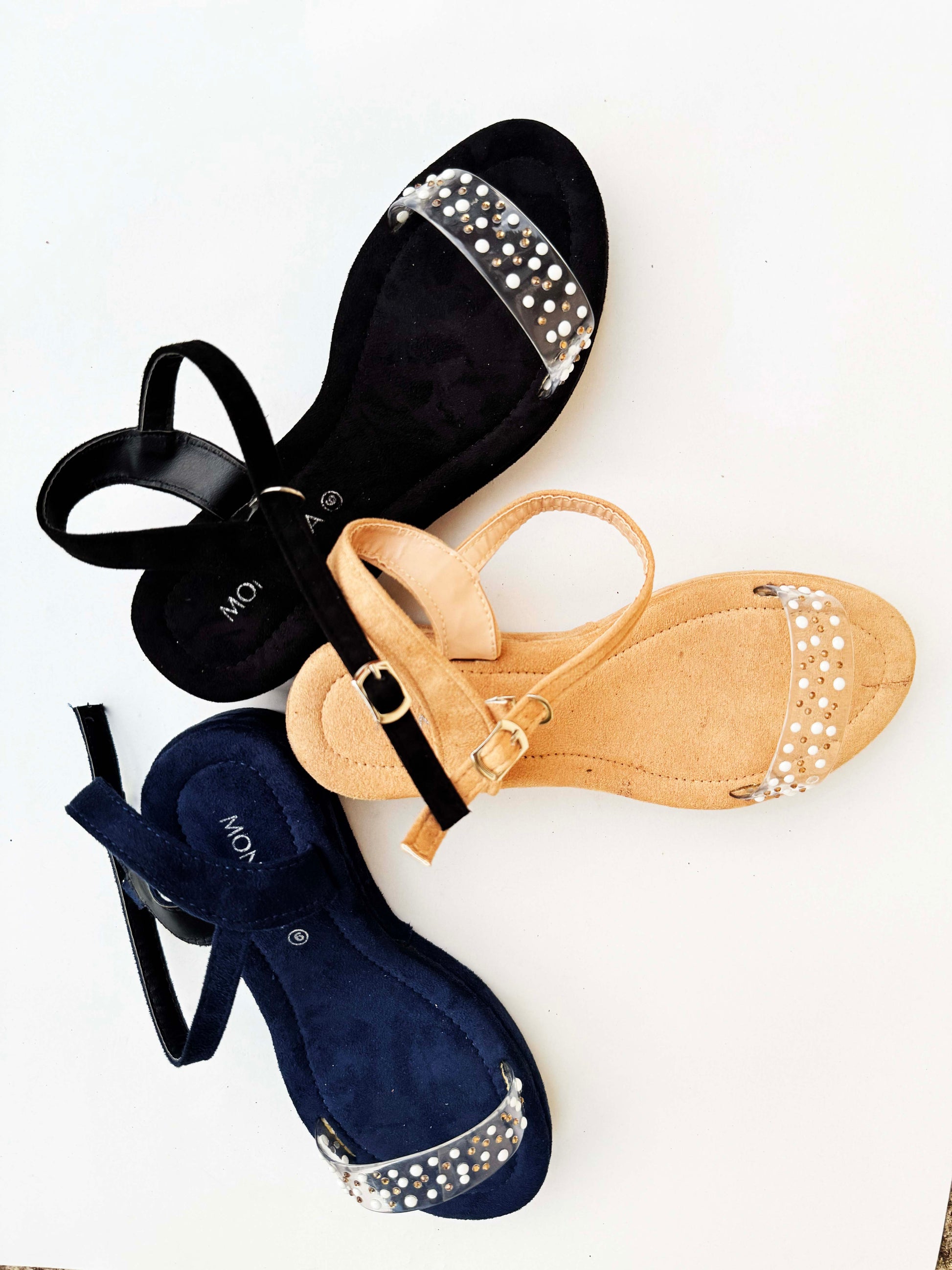 Discover the perfect blend of comfort and sparkle with Monalisa Pearl Embellished Ankle Strap Sandals, crafted by Monalisa Premier Ladies' Footwear in Sri Lanka. These stylish women's suede flats feature a transparent strap adorned with delicate pearl beads for a touch of sophistication, paired with an adjustable buckle ankle strap for a secure fit. Available in versatile colors—classic black, soft beige, and deep navy—these lightweight sandals are ideal for everyday wear, beach outings, or summer parties. Made from high-quality suede-like material with a cushioned sole for all-day support, they elevate any casual outfit while ensuring breathability and style. Shop these must-have ladies' flats now at monalisafootwear.com and step into timeless elegance.