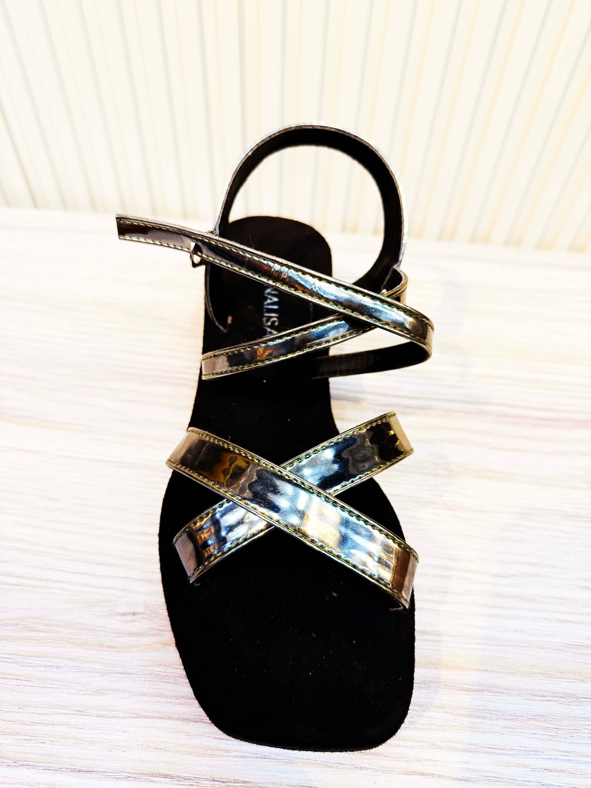 It features a modern square toe and intricate criss-cross straps that flatter the foot. The adjustable ankle strap ensures a perfect, secure fit for all-day wear. Built on a lightweight flatform sole with a soft, cushioned footbed, this sandal combines fashion with the comfort Monalisa is known for.
